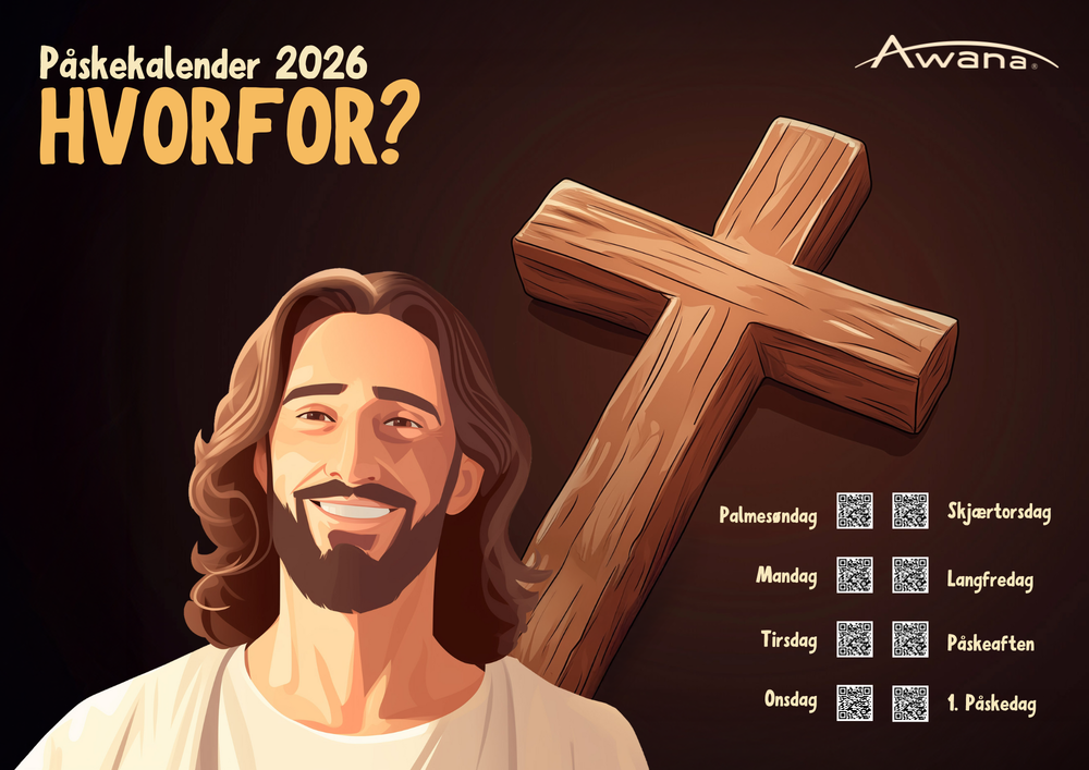 Med Awana påskekalender får dere hjelp til å samle familien hver dag gjennom hele påsken. På veggen henger en stor og dekorativ plakat (30 × 40 cm) som leder dere steg for steg gjennom påskens sterke budskap – fra palmesøndag til 1. påskedag.
